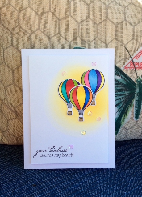 This is for Heidi's design series challenge. The images are from lawn fawn- blue skies set. Colored with alcohol markers . The ink blended behind them is versamagic mango madness. The sentiment is from dismays- a tea and coffee set. I popped up the card panel with foam squares and added a few sequins.
