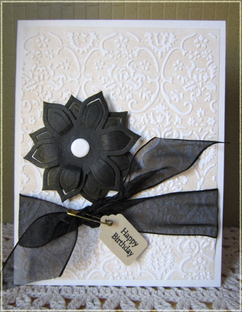 So elegant. The background came out amazing. And I really like the sheer black ribbon and how you used the safety pin to add the tag.