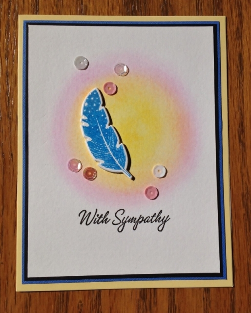 I die cut 3 feathers and layered them. The blending and the feather were both done on the smooth side of Tim Holtz watercolor paper.