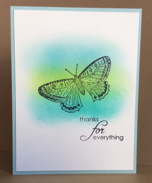 I decided to keep it simple and just stamp this Buttefly (manufacturer unknown) over top with a greeting.