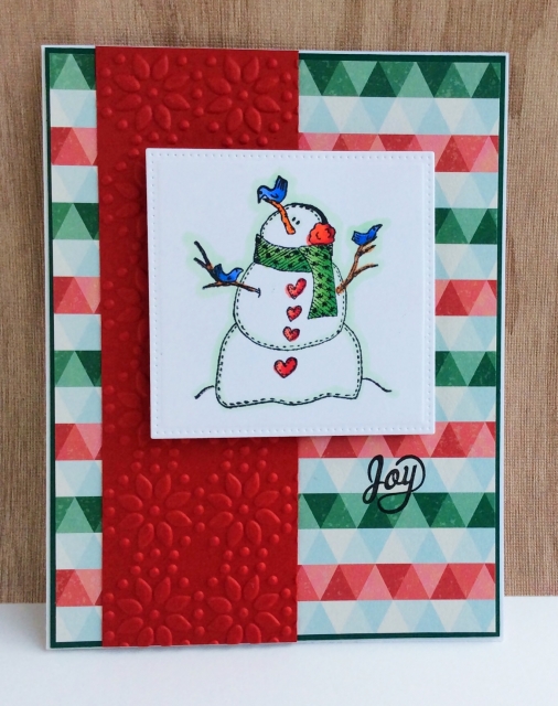 That is such a cute snowman stamp. Nice detail with the embossed panel. I'm liking this color combo.