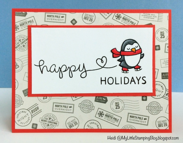 Supplies: Lawn Fawn Winter Penguin, Memento and Versafine Black inks, Alcohol markers, Pebbles Home for Christmas 6x6 paper pad, cardstock from my stash