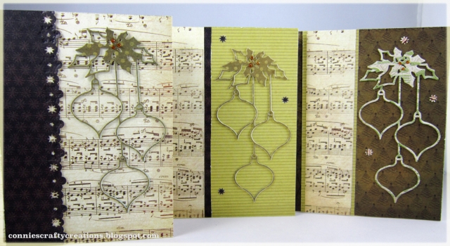 I found this music sheet paper in my stash so I used up what I had left of it to make 3 cards