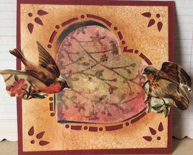 Now for the rest of the project... I used DI to pounce color around the (masked) heart. Then I stamped with a crackle stamp.