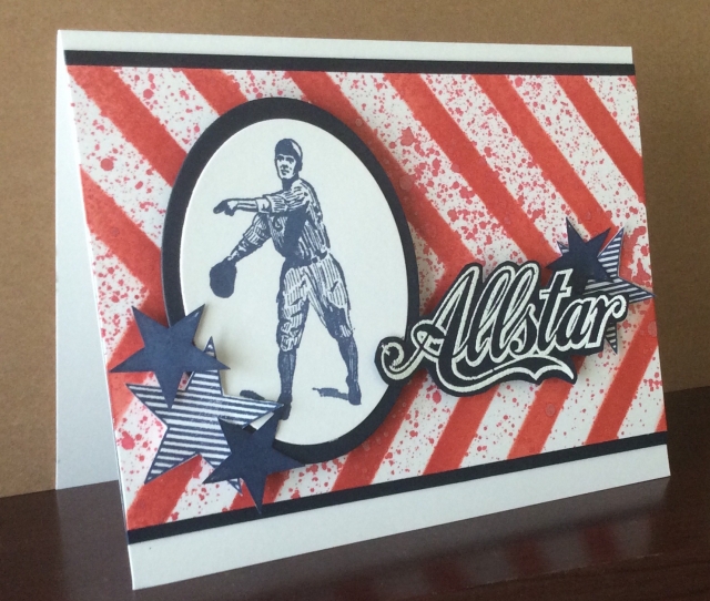 Stamped stars in Navy, fussy cut and applied all images to base with dimensional adhesive.