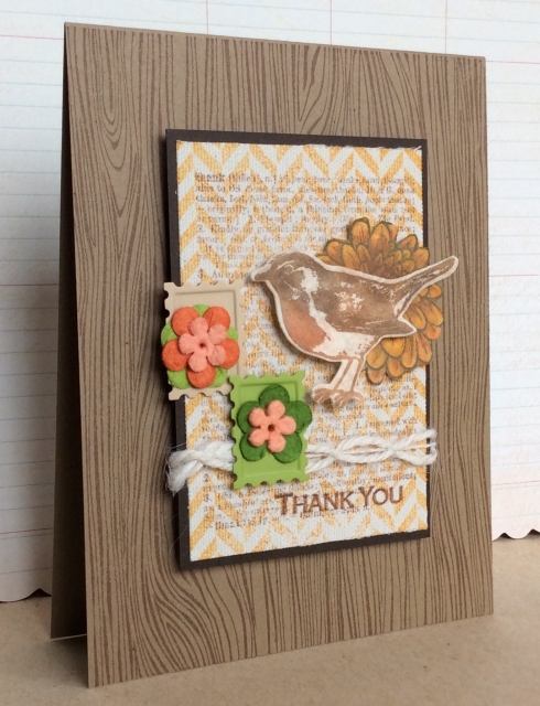 The flower was stamped in green and then colored with markers, but it was too bold for the bird so I cut it smaller and colored chalk all over it to tone it down.