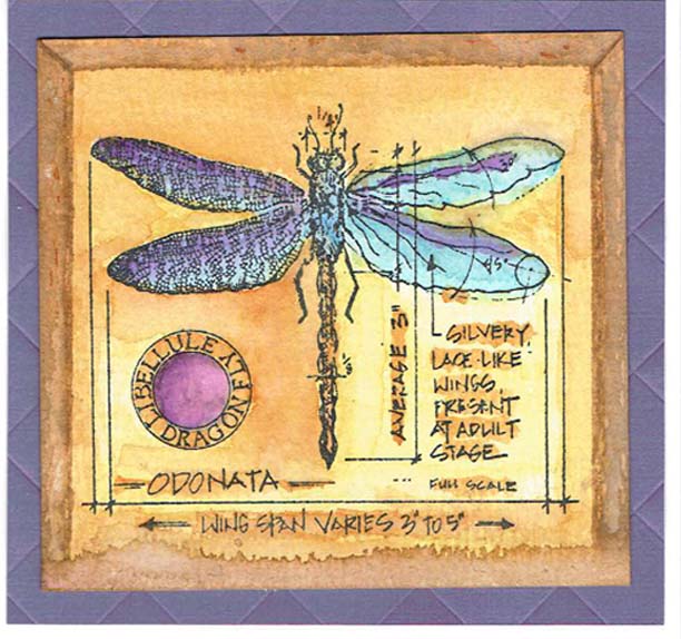 For this image I used distress markers and Tim Holtz method of wet water coloring.: Stamp image with archival ink onto watercolor paper. Lightly dampened the area I was going to immediately paint (wetting the paper helps the ink to move within that specific area). Picked-up marker ink scribbled onto the craft sheet with the lightly damp waterbrush and then color. Add additional colors on top as desired or blend colors in some areas and leave some areas with loosely uneven or color outside the lines . This is the process Tim demonstrates to share wet water coloring. Thanks for looking!...Jan