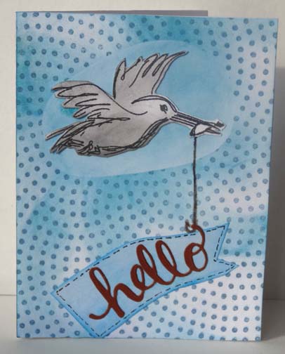 Cute card. I like the sense of motion. It is very unique both in the dots and in the sponging. I also like how you have the hello dangling down.