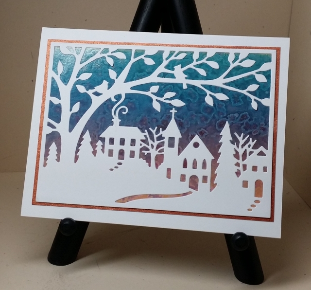 I don’t have enough Christmas cards, and it’s already December 12. Desperate, I went through my stash of die-cuts and backgrounds, and I now have three more cards made.