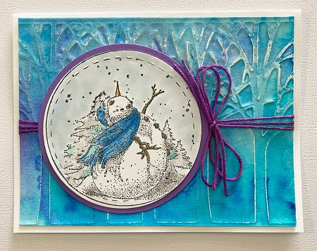 Beautiful background. The snowman image is very dramatic and sophisticated. Great card. TFS. Daria