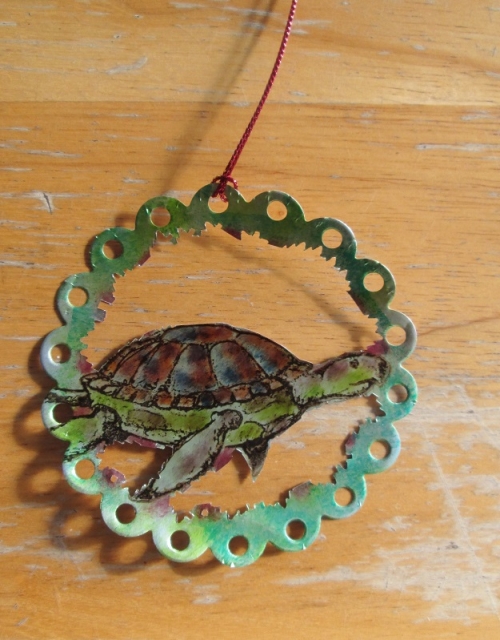 This is my favorite. I love the turtle. The coloring is just what I would imagine. And I really love the coloring on your ring. Thanks for sharing.