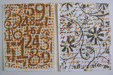 For these backgrounds I used one embossing folder and inked the raised areas and then used another embossing folder on top of it and inked it in another color. The flower piece is upside down! LOL!