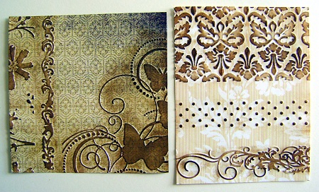 On these backgrounds I used patterned paper, 3 different embossing folders in different areas and inked the raised areas.