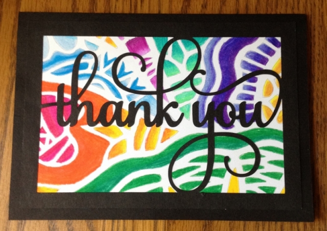 My brother and sister-in-law sent me a coloring book for my birthday so I colored most of a sheet and made it in to a thank you card.