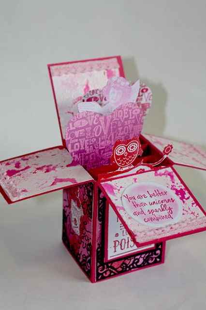 On the lid pieces I added lace and on the body I added the original Cuttlebug corner dies.