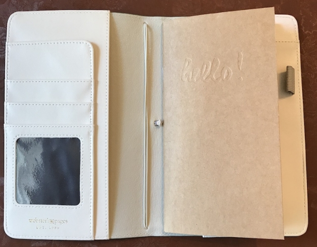 This is the inside of my Webster's Pages travelers notebook. You can add and remove inserts by tucking them in the rubber bands.