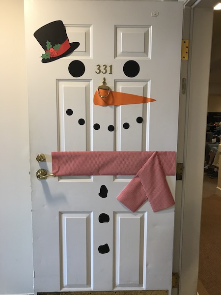Oh, and I didn't remember the big room number and door knocker, so poor frosty has a number on his forehead!