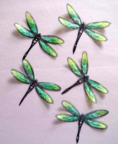 I made 2 flowers for Jan's card and then these dragonflies. I thought the dragonflies were more of a summer embellishment, so I went with flowers on the card.