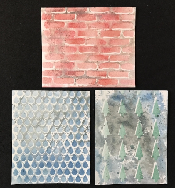 Thanks for the challenge, Jan! I've had fun getting inky with stencils and distress glaze. These samples were all done on watercolor paper.