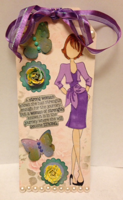 Everything was from my kept kit except for the enamel dots, flowers, pearls and ribbon. I colored the image with Spectrum Noir markers and used different colors of distress inks on the butterflies, circles, scalloped circles, and quote.