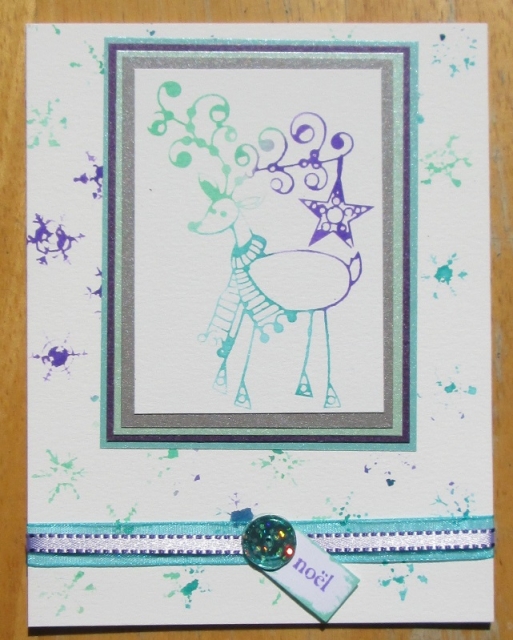The reindeer is by Outliners. The background snowflakes are by Recollections. The sentiment is Penny Black.