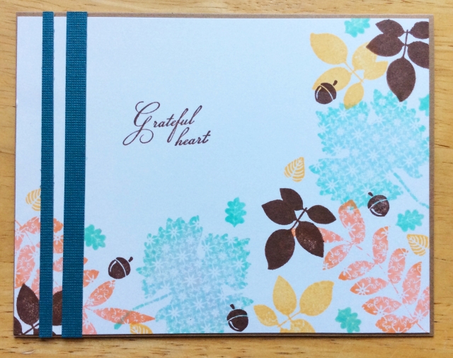I liked Cindi’s card a lot so I decided to try to CASE it. However, her color of turquoise is elusive to my collection of inks. I tried Rock n Roll stamping for my technique (not for the brown) to try to get closer to her colors, but I still couldn’t find that pretty blue!
