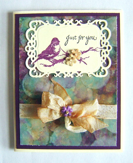 I love it! That bird stamp is really pretty and I love it stamped in purple, great job