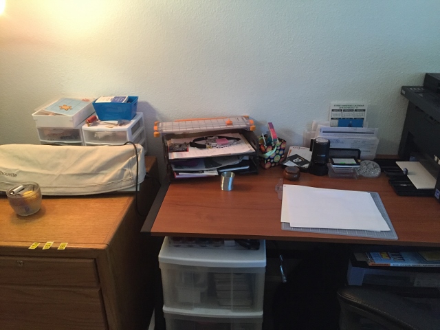 Here is the before picture of my desk. I also have a tall bookshelf and one of those rolly carts with 9 drawers.
