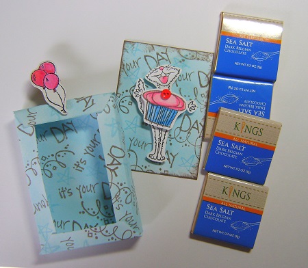 Here is my revised drawer for the box. I inked and stamped the inside of the drawer the same as the outside. I also made an ATC with the other cute cat as a surprise for the inside. The ATC will go on top of the candy that I will hide inside.