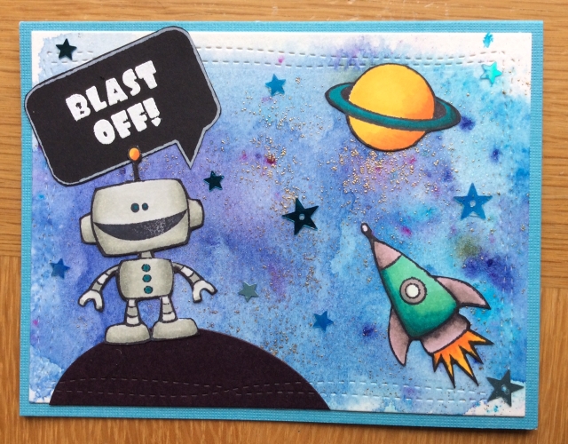 Out-of-this-world Fun! The little robot is super cute. Great background and coloring.
