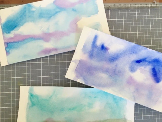 Here are 3 of my sky backgrounds done with watercolor on Arches 140lb paper with tube watercolors. I didn't like any of them! L:OL