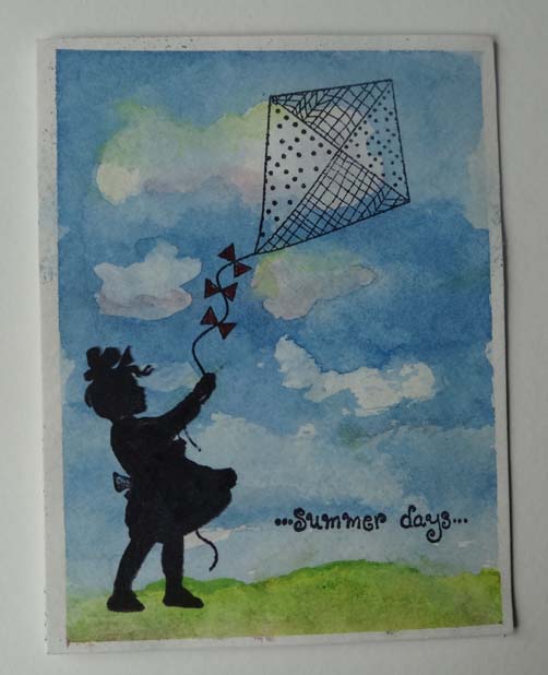 Very pretty! The clouds are so great and I like that you painted some grass in too! The stamps are really great and summery!