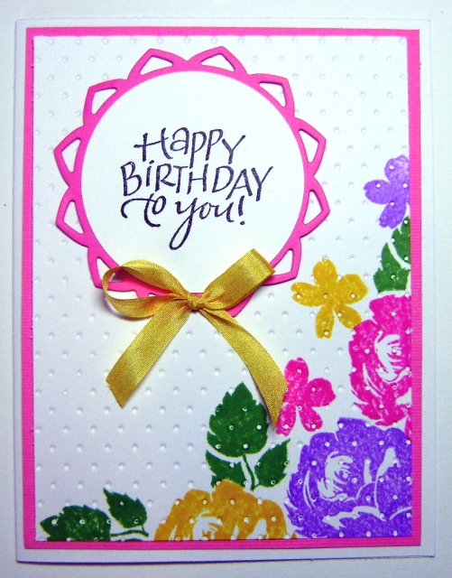 I like the dotty texture. It lightens it up and makes it a cheery birthday card. It looks like you stamped on the debossed side, right?