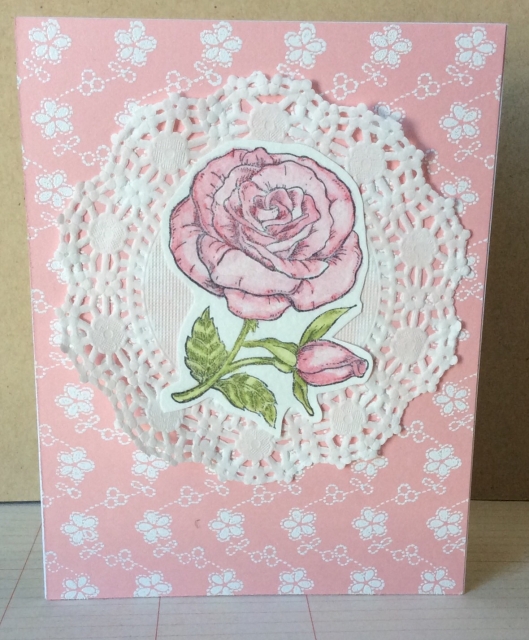 The flower and doily are a leftover from a KIAE from Carribean Girl. I used watercolor pencils to color the flower.