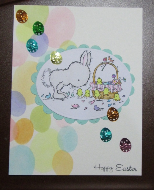 For the Bokeh Challenge, I created a couple of oval stencils with nesties dies because I wanted them to look like eggs. I used Distress Inks in Spun Sugar, Dried Marigold, Squeezed Lemonade, Shabby Shutters, Tumbled Glass and Milled Lavender.